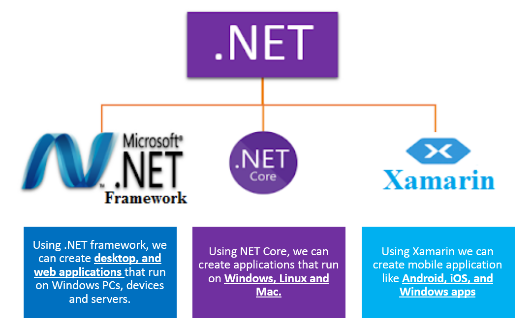 .NET (Pronounced dot net) is a framework from Microsoft , that provides a programming platform which can be used to develop a wide range of applications––– from Web to Mobile to Windows-based applications (It is not a programming language by itself).