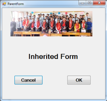 To implement Form Inheritance, we create a windows Form (parent form / base form) and inherit forms from the parent form. This is known as Form inheritance. The advantage of using this feature is that when changes are made to the parent / base form, all the inherited forms will automatically adapt the changes.