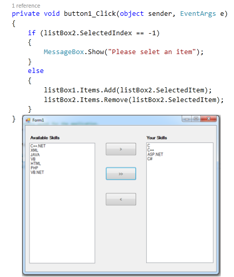 The ListBox control is used for presenting the user with a list of options for selection. Depending upon the property of the listbox, users can select one or more items from it.