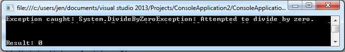 catch − A program catches an exception with an exception handler at the place in a program where you want to handle the problem. The catch keyword indicates the catching of an exception.