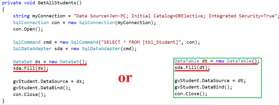 DataReader vs DataAdapter