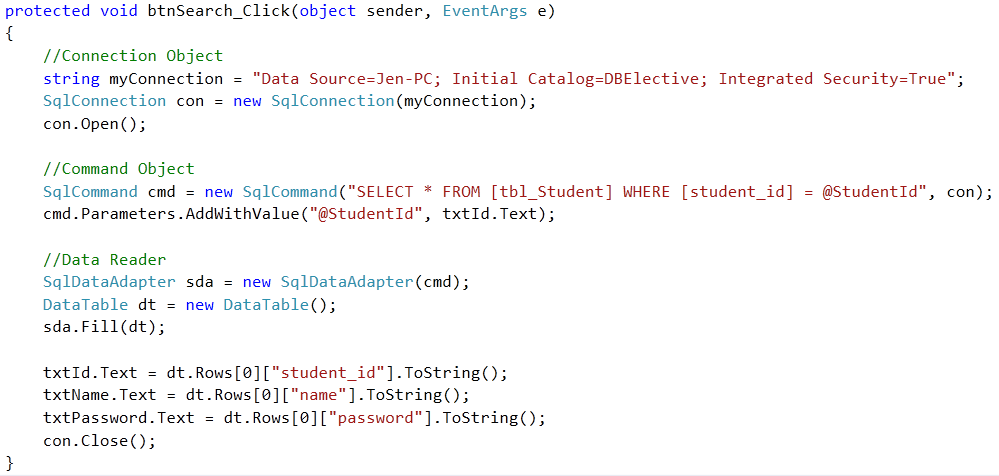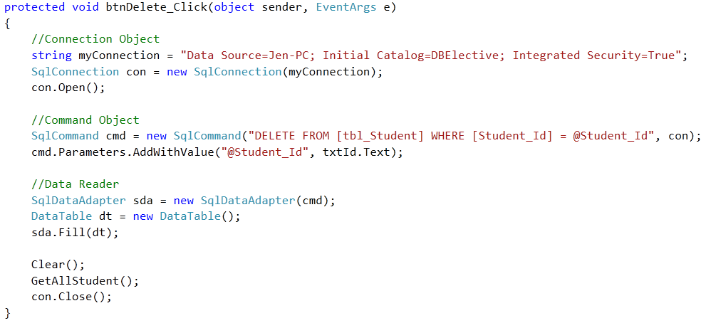 - Microsoft SQL Server Data Provider : SQL Server uses the SqlConnection object