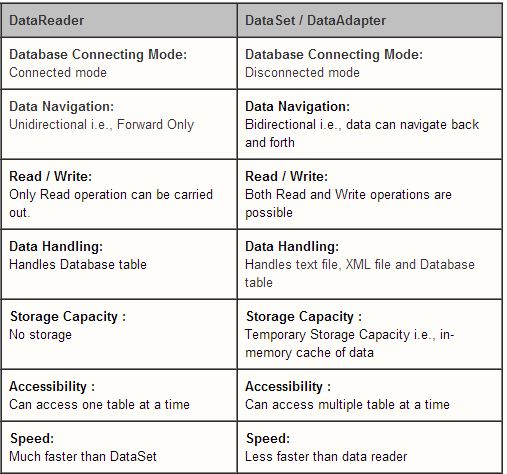 | Speed performance is better in DataReader. |