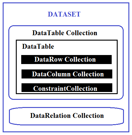 In ADO.NET, the memory representation of data is DataSet or DataAdaptor . (In ADO.NET, you have various objects that allow you to access data in various ways. ADO.NET DataSet can contain multiple tables from various data sources. The tables within a dataset are called data tables. The DataSet object will actually allow you to store the relational model of your database. If a dataset contains data from multiple database tables, it will typically contain multiple DataTable objects. That is, each DataTable object typically corresponds to a single database table or view) . |