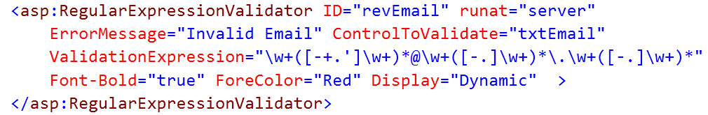The RegularExpressionValidator allows validating the input text by matching against a pattern of a regular expression.